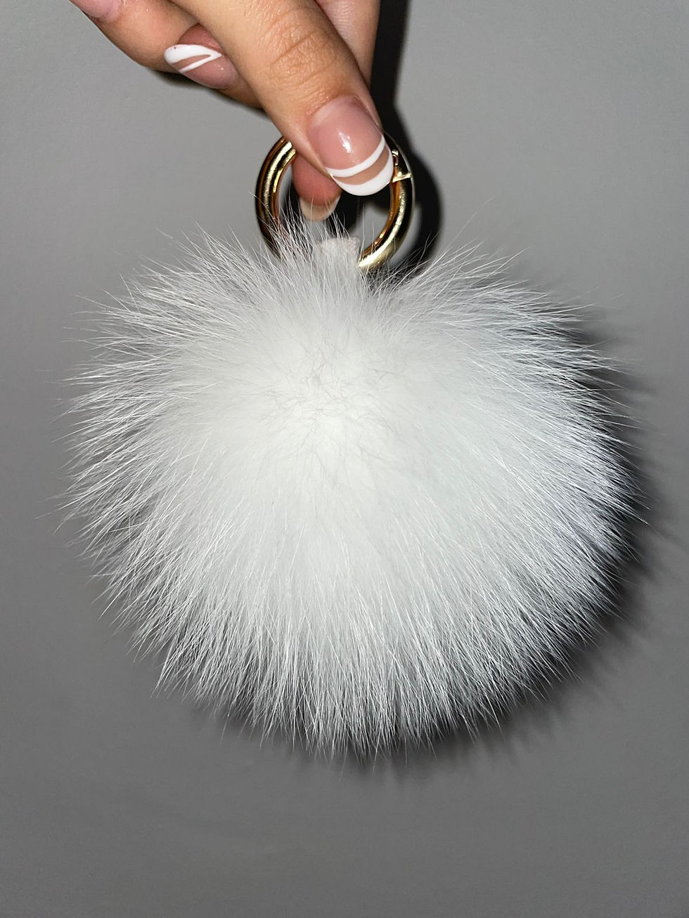 Pompom KeyChainWhite w/ Silver Tips
